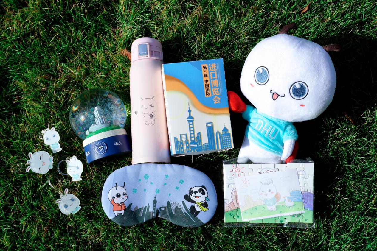 除此之外,为了鼓励志愿者元气满满开启新一天,东华“小叶子”装备升级。学校专门设计了激励套装,引入年轻人喜爱的盲盒理念,将蚕宝宝形象和进博会元素相结合,体现东华人在进博的奋进姿态。内含保温杯、钥匙扣、拼图、隐藏款徽章等多样定制周边,提升激励趣味性。后续,还将推出东华“蚕宝宝”进博系列表情包,为志愿者们加油鼓劲。
